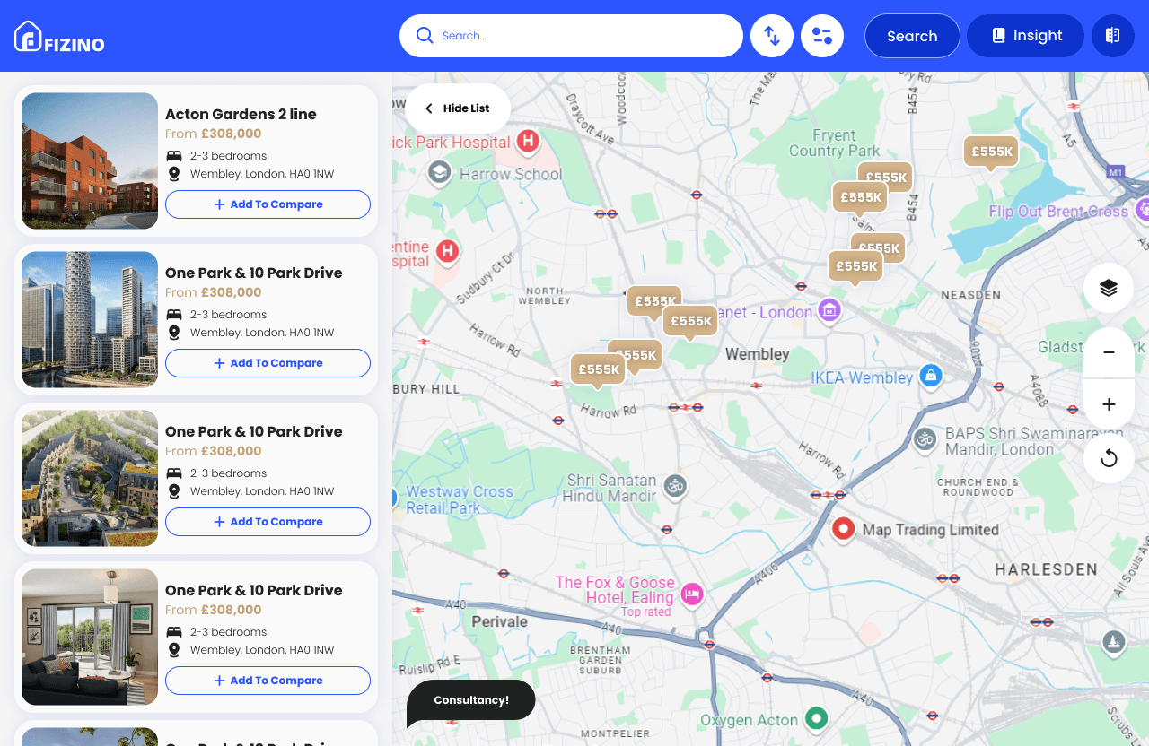 Fizino is an AI-powered platform for London newbuilds, offering personalized property recommendations, smart search tools, immersive visuals, and guidance throughout the home-buying journey.